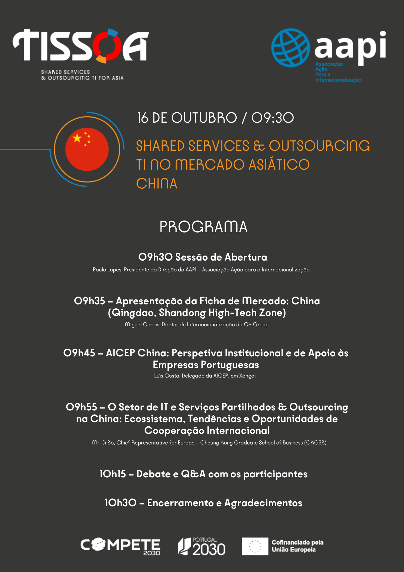 O primeiro webinar é dedicado à China, o maior ecossistema digital do mundo e um dos mercados mais promissores para a internacionalização de serviços tecnológicos. A sessão abordará o contexto atual do setor, perspetivas de mercado e oportunidades reais de cooperação internacional, proporcionando às empresas portuguesas uma visão direta sobre as possibilidades de atuação no mercado chinês.