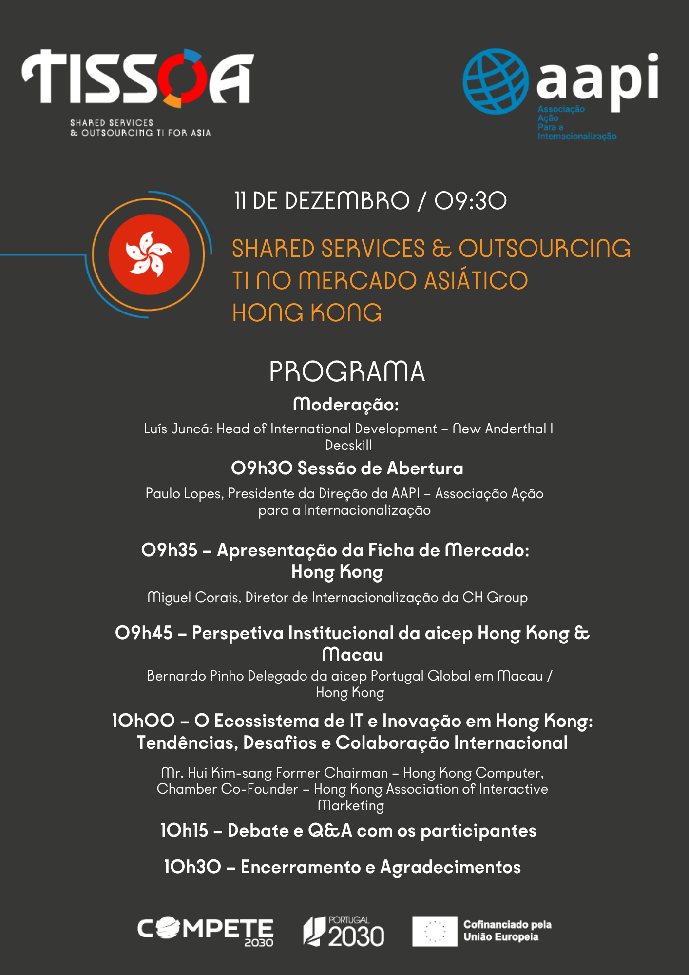 O próximo webinar promovido pela AAPI, é dedicado a Hong Kong, um mercado altamente desenvolvido e regulado na Ásia. O território, com forte integração à Greater Bay Area da China, destaca-se como centro financeiro e digital, com foco em fintech, regtech, legaltech, cloud, IA e cibersegurança. A sessão aborda tendências tecnológicas, oportunidades para PME portuguesas e formas de cooperação internacional por meio de hubs como o Cyberport e o Hong Kong Science and Technology Park. Faça já a sua inscrição. Mais informações serão divulgadas em breve.